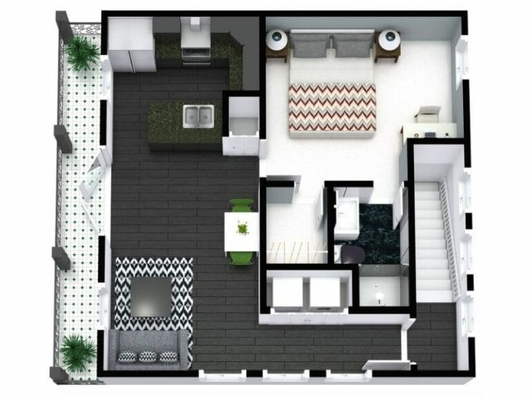 2D Floor Plan - Black & White