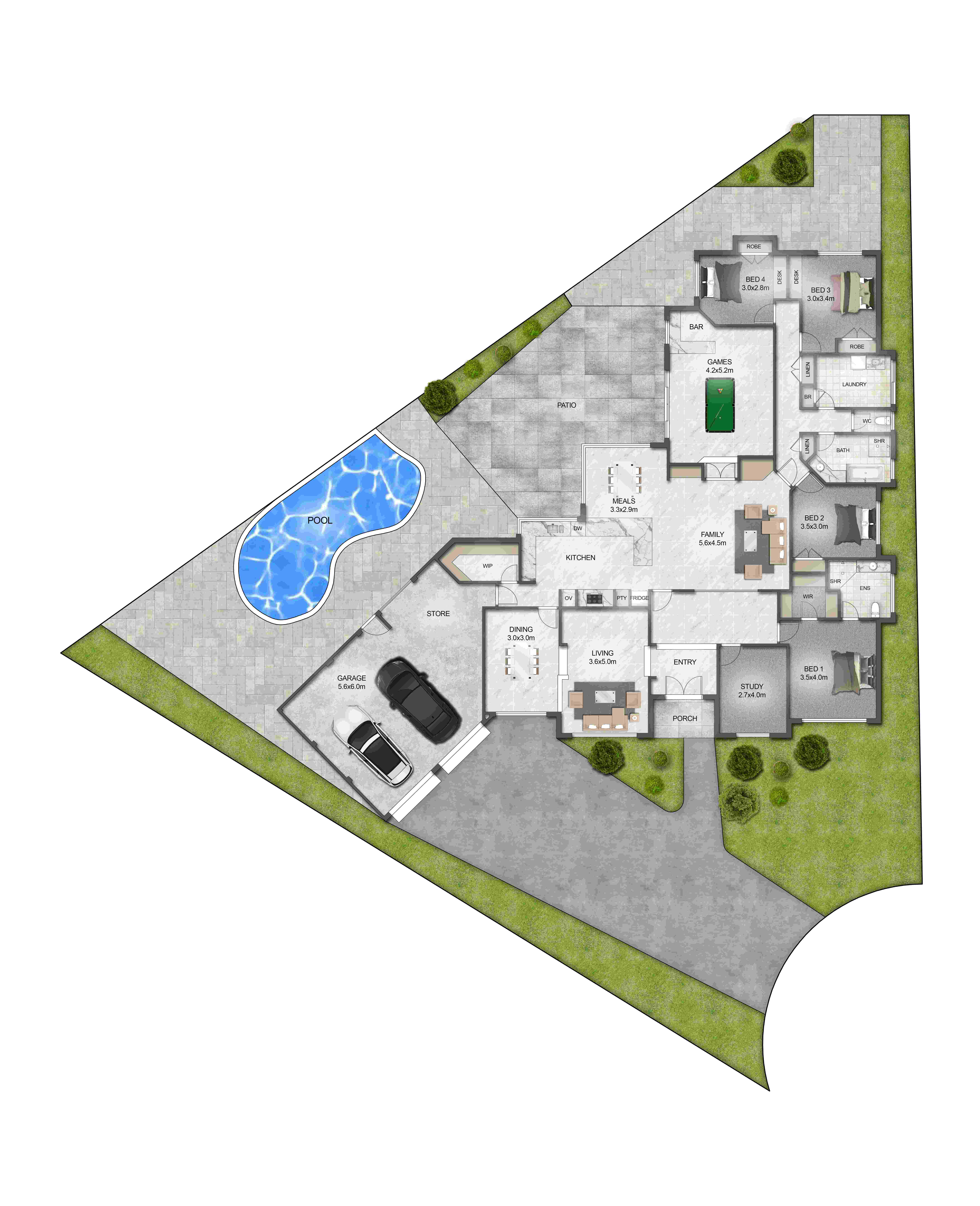 2D Floor Plan - Textured & Site Plan