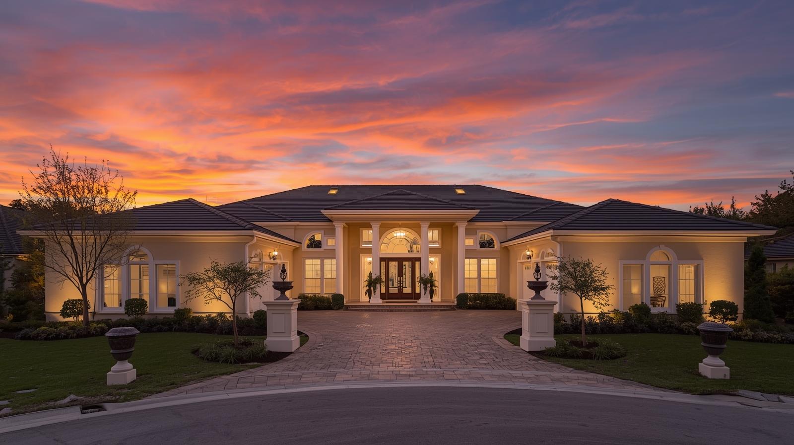 For luxury homes or evening listings, we offer dramatic sunset and twilight sky replacements. These add a warm, inviting atmosphere and highlight exterior lighting beautifully.